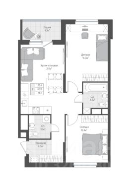 Общая площадь65,95 м²