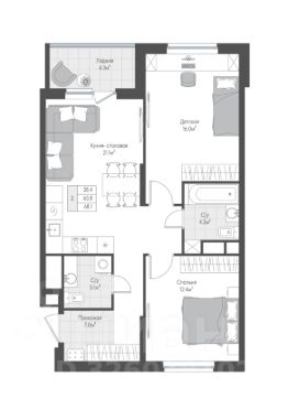 Продается квартира с просторной кухней-гостиной (21 кв м) и двумя спальнями. Лоджия с выходом из кухни-гостиной. Два полноценных санузла для удобства всех членов семьи. Окна выходят во двор и на зону парковки, жители будут избавлены от шума проезжей части и смогут наблюдать за детьми, играющими во дворе.
