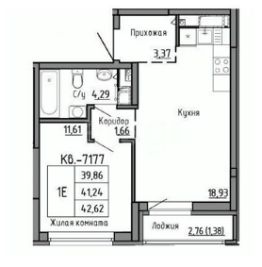 У квартиры прекрасная планировка: просторная кухня-гостиная площадью 19 кв.м. станет излюбленным местом встреч всех членов семьи, удобная комната правильной квадратной формы площадью 11.6 кв.м., а бонусом - шикapная лoджия c панорамным oстеклeниeм площадью 2,8 кв.м. с прекрасным видом из окна.
