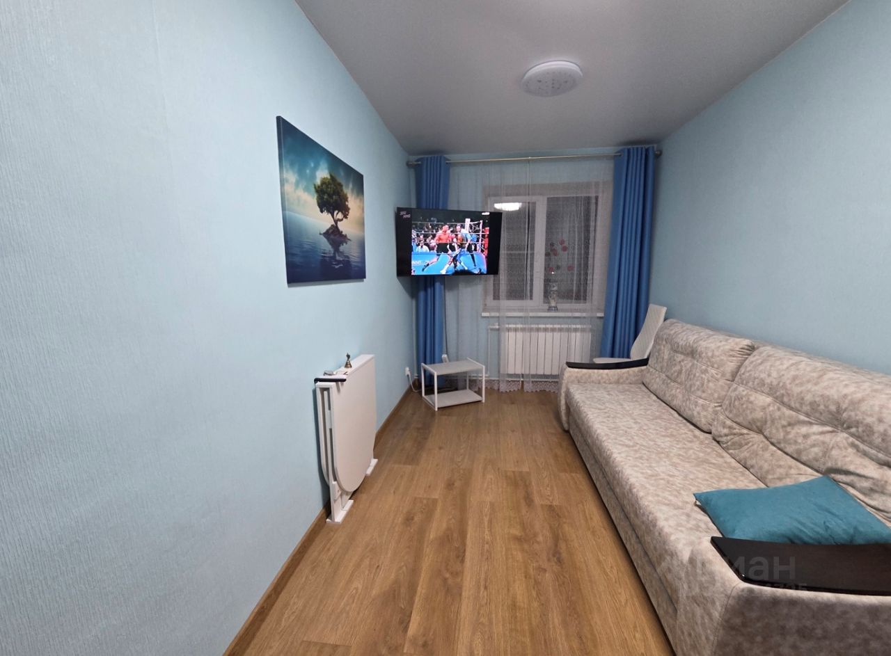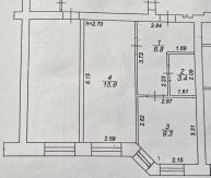 Жилая площадь 15,9 м2. Планировка: жилая комната 15,9 м2; кухня 9,3 м2; большая прихожая 6,8 м; санузел совмещенный 3,4 м2. Высота потолков 2,7 метра.