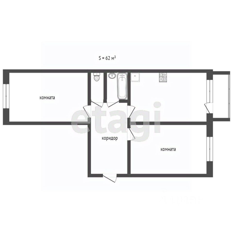 Просторная планировка: Изолированные комнаты для уединения, большая кухня для семейных обедов и раздельный санузел для практичности.