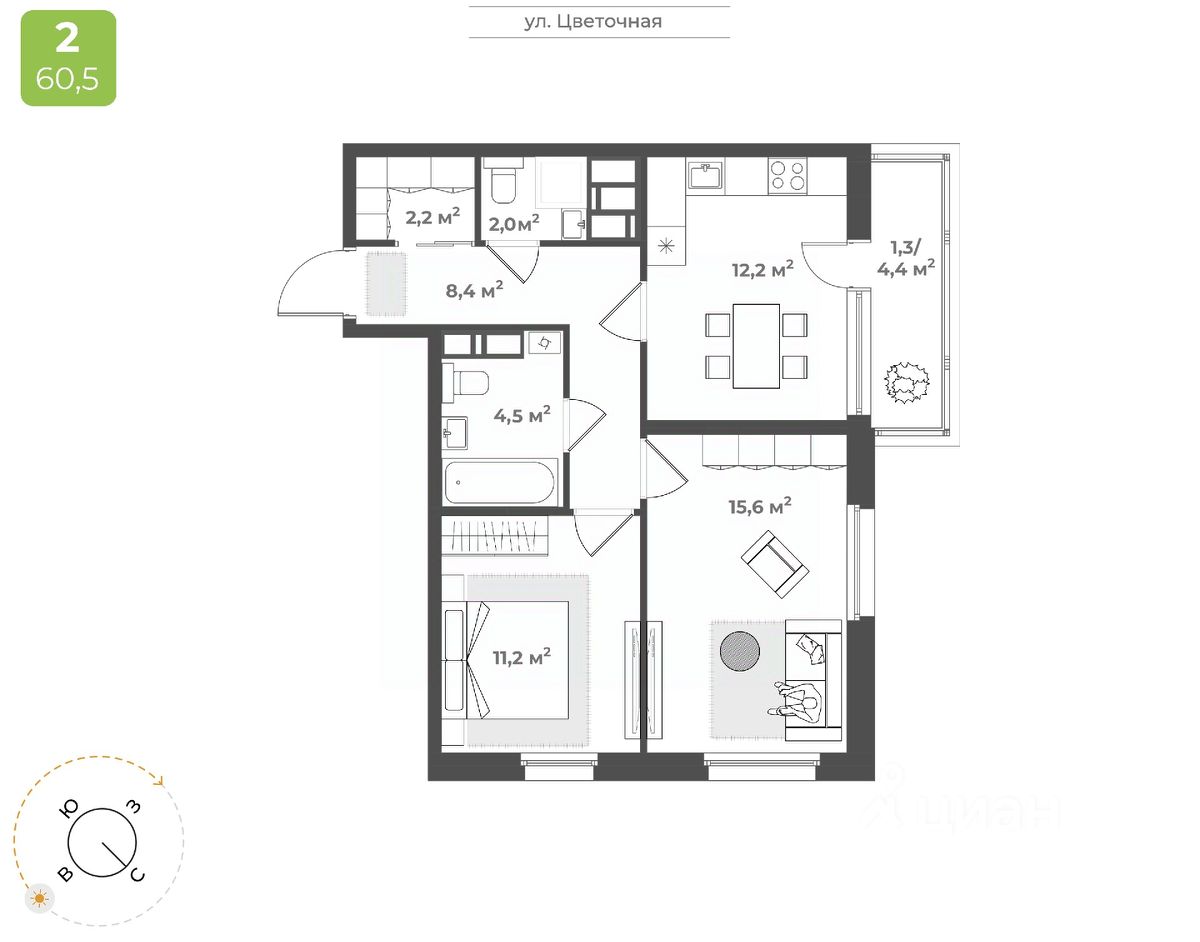 Продаётся 2-комнатная квартира в строящемся доме (Дом 2), срок сдачи: IV-кв. 2026, общей площадью 57.4 кв.м., на 13 этаже. Будущий жилой квартал - это уникальный для Твери проект, обеспеченный всем необходимым для жизни: благоустроенный двор без автомобилей, детские площадки для разных возрастов, зоны для спорта, продуманные планировки квартир. На территории комплекса появится новая школа на 1224 мест и центральный бульвар.
