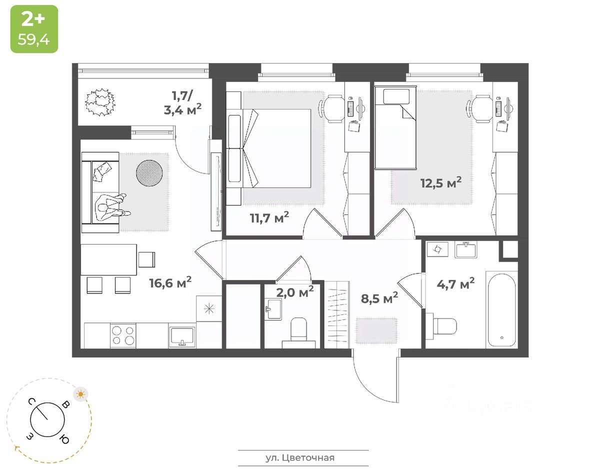 Продаётся 2-комнатная квартира в строящемся доме (Дом 2), срок сдачи: IV-кв. 2026, общей площадью 57.7 кв.м., на 11 этаже. Будущий жилой квартал - это уникальный для Твери проект, обеспеченный всем необходимым для жизни: благоустроенный двор без автомобилей, детские площадки для разных возрастов, зоны для спорта, продуманные планировки квартир. На территории комплекса появится новая школа на 1224 мест и центральный бульвар.