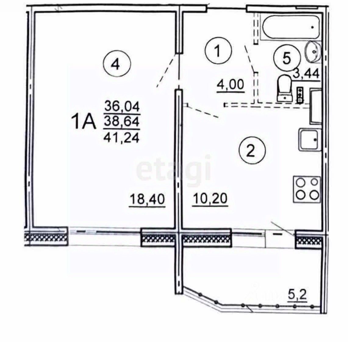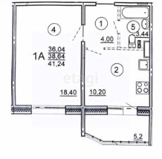 Умная планировка 41,24 м²: Просторная комната (18,4 м²), удобная кухня (10,2 м²), аккуратная прихожая и новый совмещённый санузел.