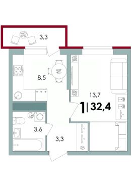 Общая площадь32,42 м²