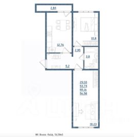 56,58 м²