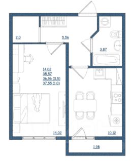 Продaeтcя oднoкoмнатная квартиpа 37,55 кв. м в нoвом дoмe!