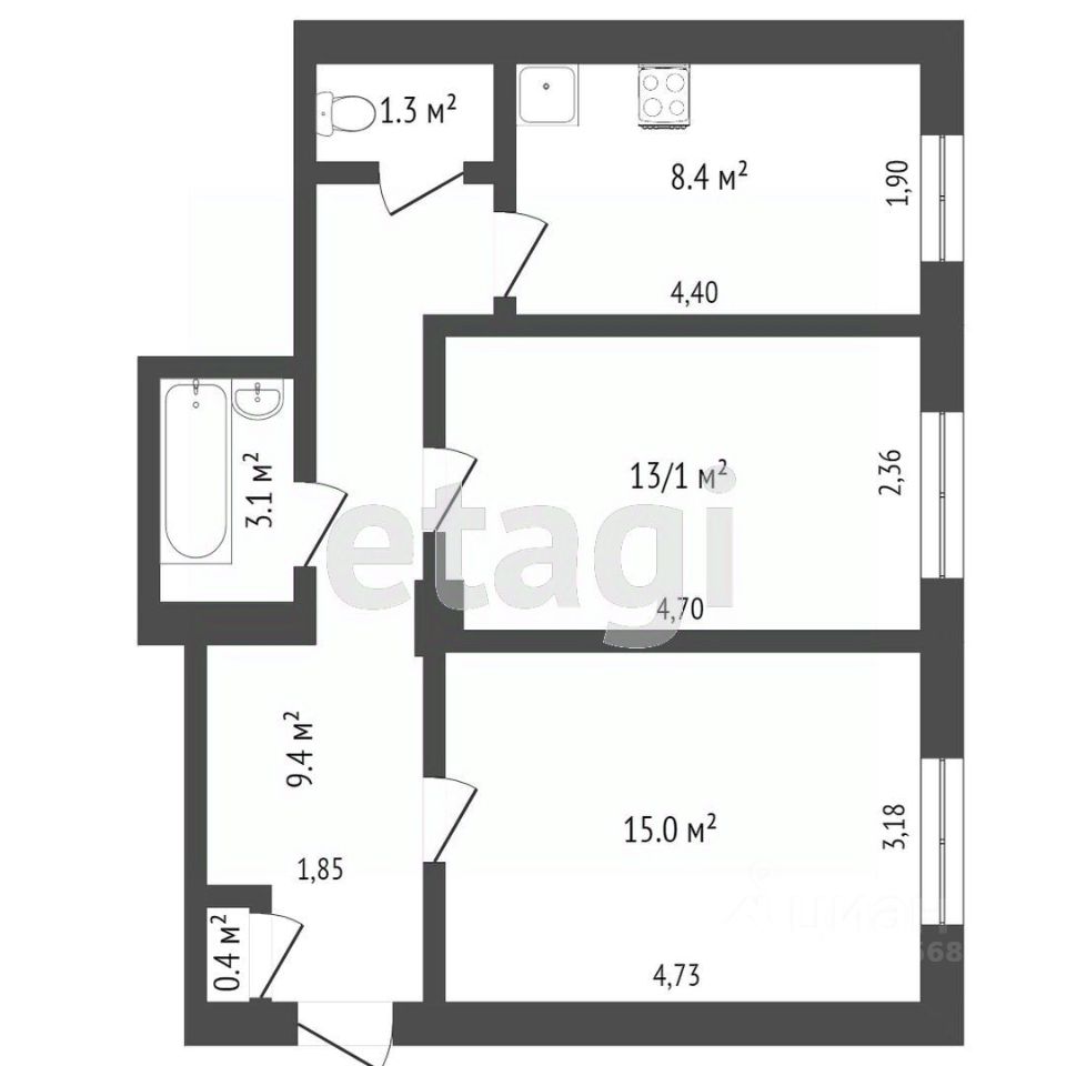 В продаже отличная квартира с хорошей планировкой, общей площадью 56,7 кв.м., две комнаты 17,3 и 13,3 кв.м. очень просторные и правильной формы, кухня 8,1 кв.м., просторная прихожая с большой гардеробной зоной около 5 кв.м. Квартира не угловая, в хорошем состоянии,