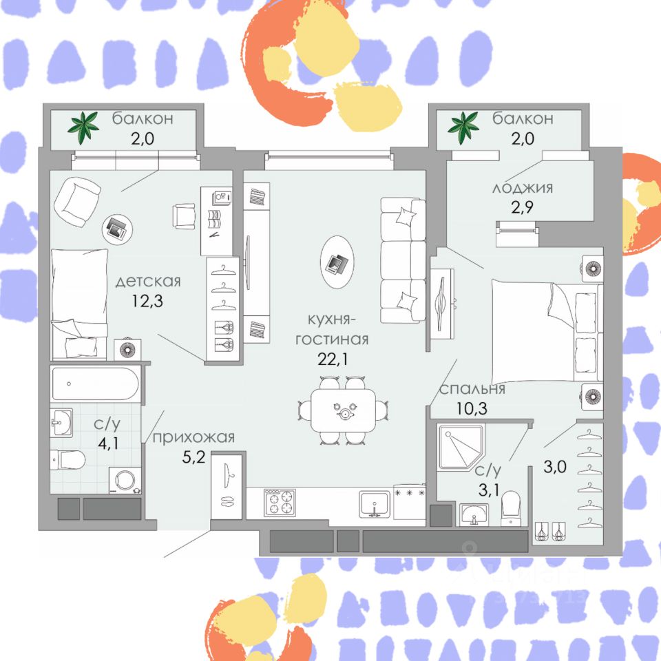 22,1 м²