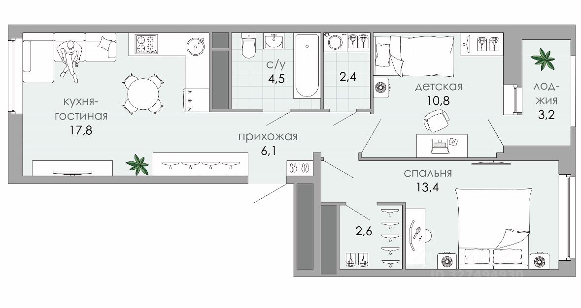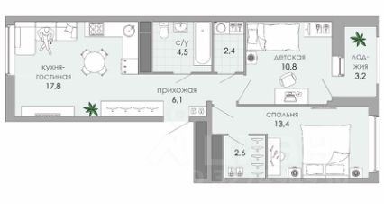 Продается двухкомнатная квартира площадью 60,8 кв. м. с предчистовой отделкой. Два санузла. Сдача дома планируется в 3 кв. 2026 года.