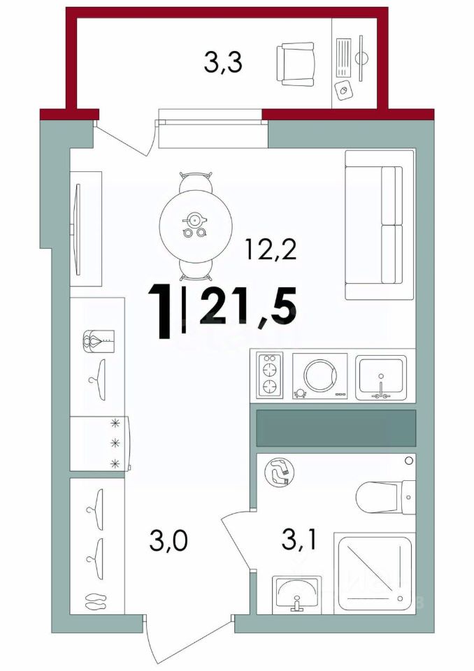 Площадь студии 21,5 кв.м. Сдача 3й квартал 2026 года.