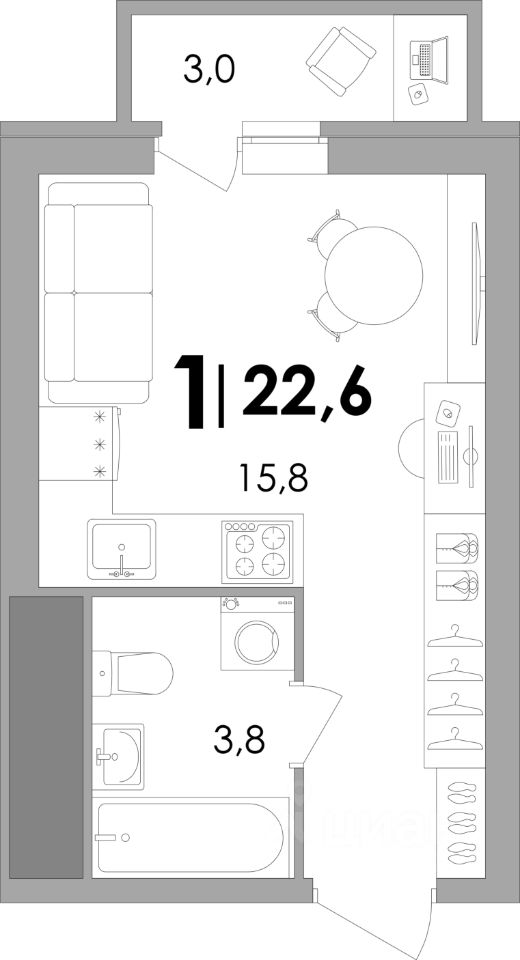Общая площадь22,55 м²