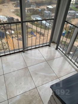 -застеленный балкон с уложенной плиткой на полу