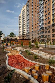 Для взрослых, которые хотят просто отдохнуть, вместе с детскими площадками размещены скамейки, лавочки, лежаки, гамаки, беседки, где можно читать книгу, пить кофе и общаться с соседями.