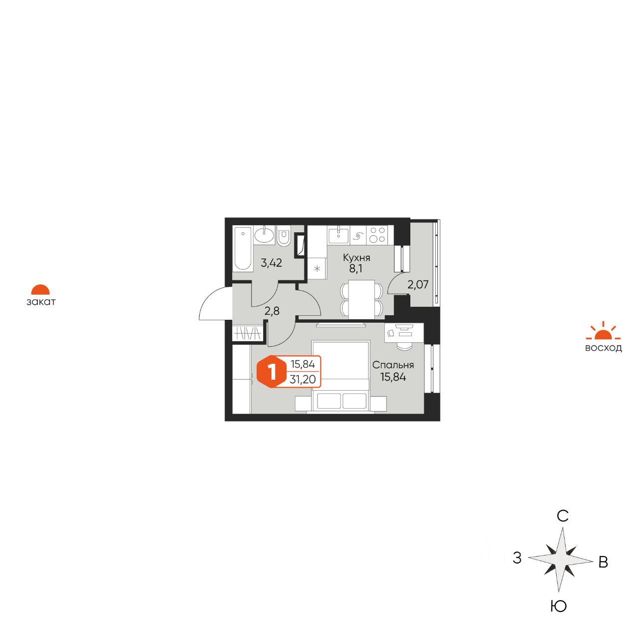 Общая площадь31,2 м²