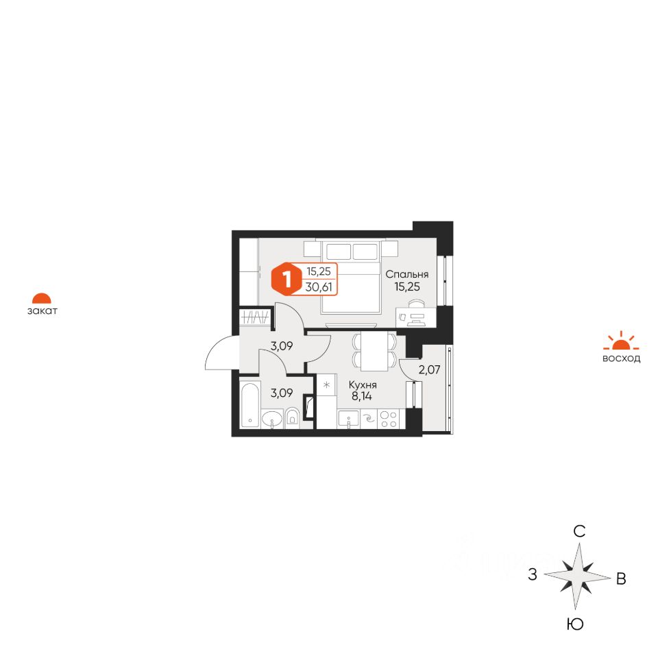 Общая площадь30,61 м²