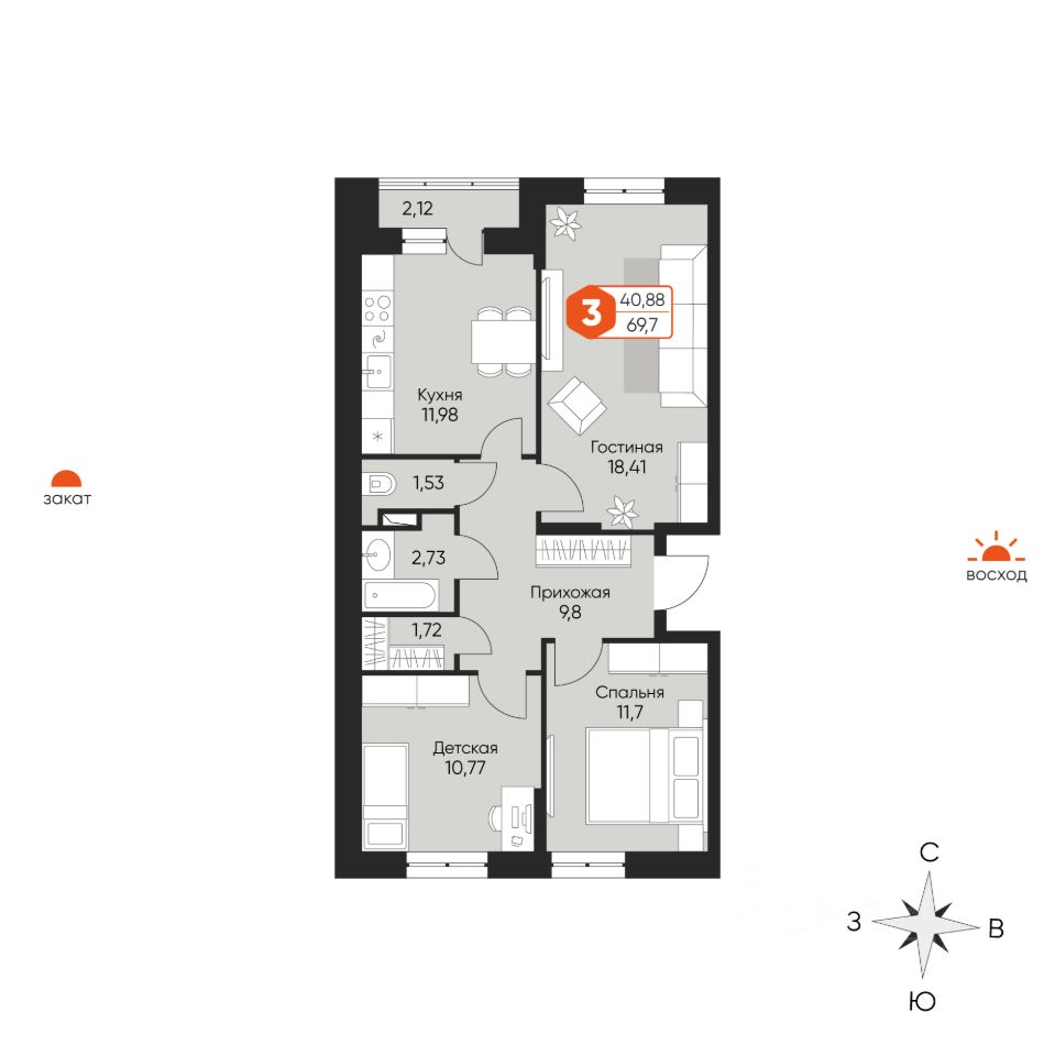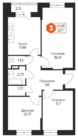 Общая площадь69,7 м²