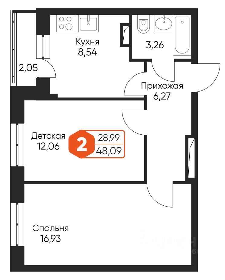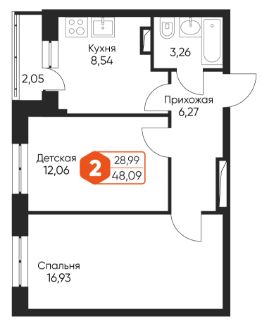 Общая площадь48,09 м²