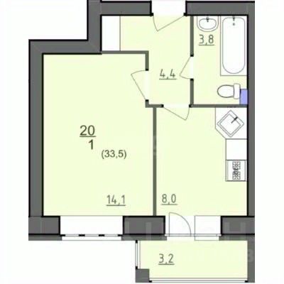 Общая площадь квартиры — 33,2 м²