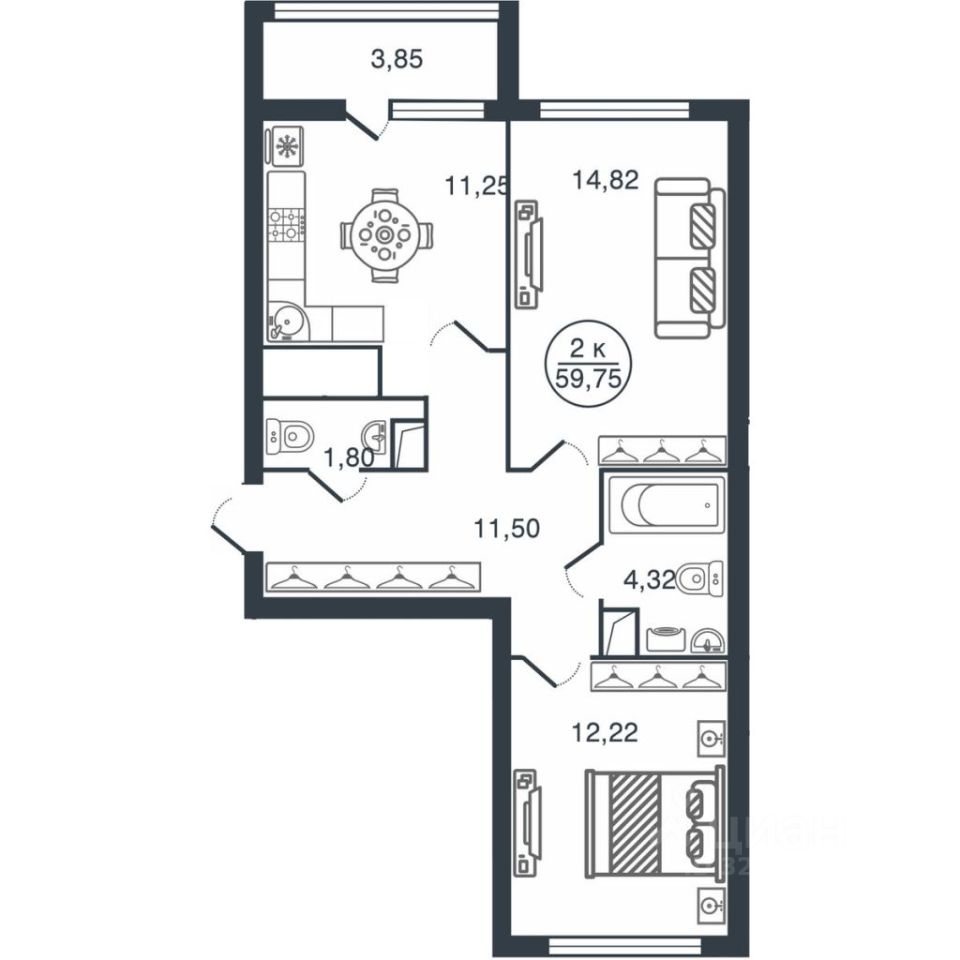 Квартира с черновой отделкой.