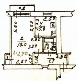 Общая площадь 32,7 кв.м., просторная жилая комната 18 кв.м. с маленькой кладовкой удобно для хранения вещей.