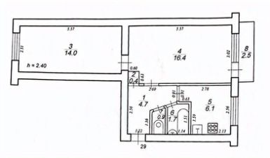 Общая площадь 44 кв.м., жилая 30,4 кв.м., кухня 6,1 кв.м.