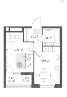 Планировка предусматривает совмещённый санузел и балкон, что добавляет удобства.