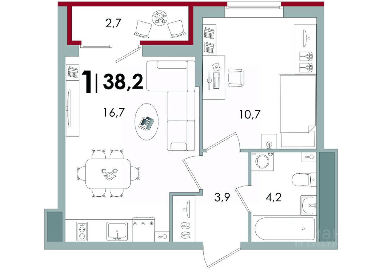 Общая площадь38,2 м²