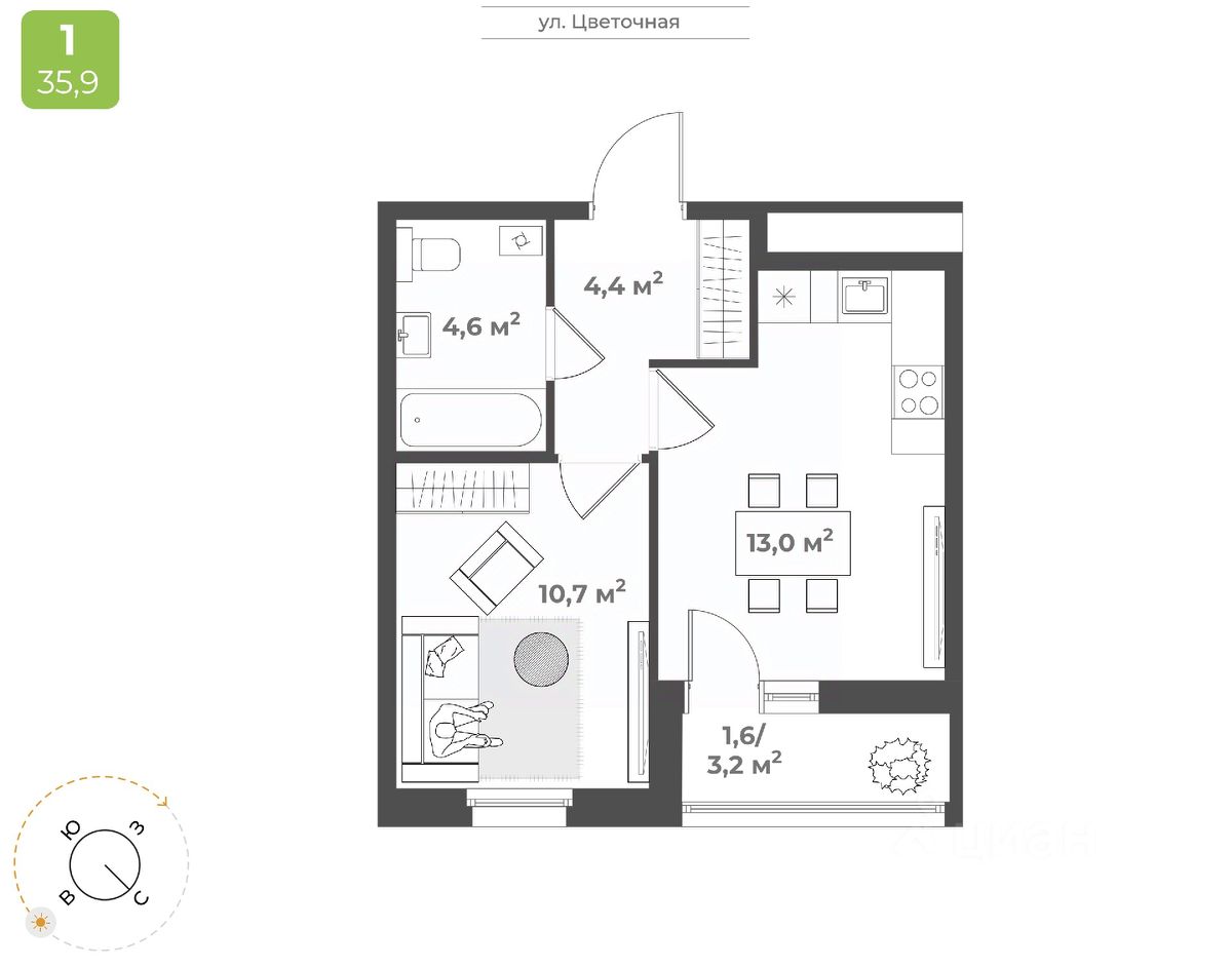 Продаётся 1-комнатная квартира в строящемся доме (Дом 2), срок сдачи: IV-кв. 2026, общей площадью 34.3 кв.м., на 2 этаже. Будущий жилой квартал - это уникальный для Твери проект, обеспеченный всем необходимым для жизни: благоустроенный двор без автомобилей, детские площадки для разных возрастов, зоны для спорта, продуманные планировки квартир. На территории комплекса появится новая школа на 1224 мест и центральный бульвар.