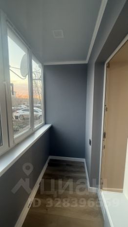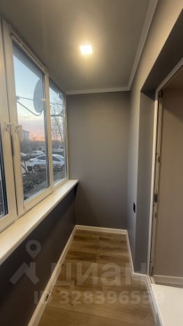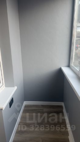 Застекленная лоджия. Пол кварцвинил, стены декоративная штукатурка. На лоджии смонтировано освещение, тёплый пол.