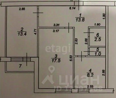 Квартира обладает продуманной планировкой: общая площадь 58,4 кв.м, включает в себя функциональную кухню 8,2 кв.м., две изолированные комнаты площадью 17,5 и 13,5 кв.м., одна из которых имеет выход на балкон, раздельный санузел, а так же просторную прихожую площадью 13,8 кв.м, в которой обустроена система хранения.