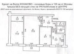 Трешка в центре Конаково - шаговая доступность до Волги и вокзала, 120 км от Москвы
