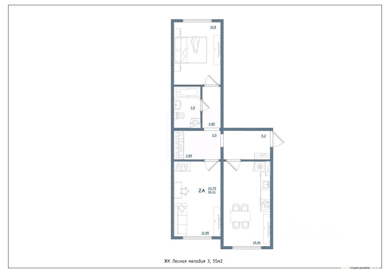Общая площадь55 м²
