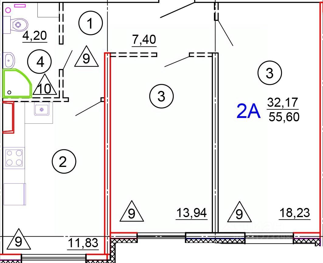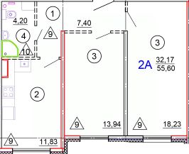 Общая площадь55,6 м²
