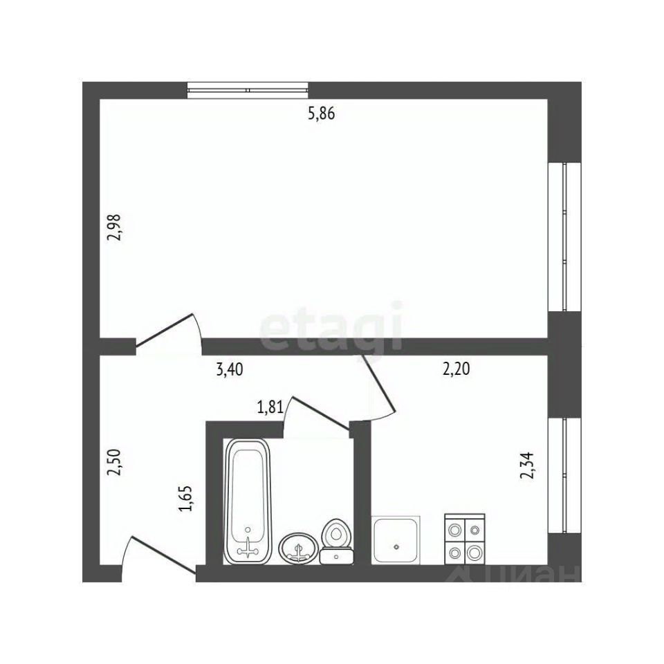 В продаже однокомнатная квартира на втором этаже 5-тиэтажного дома Общая площадь 31.5 кв.м!