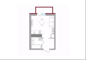 Квартира площадью 25 м² расположена на 4 этаже современного 18-этажного монолитно-кирпичного дома по улице Сергея Есенина, 15.