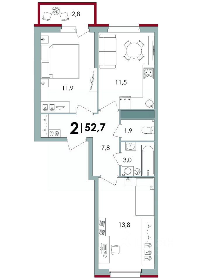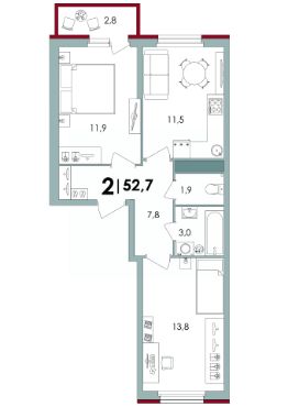 Общая площадь52,74 м²