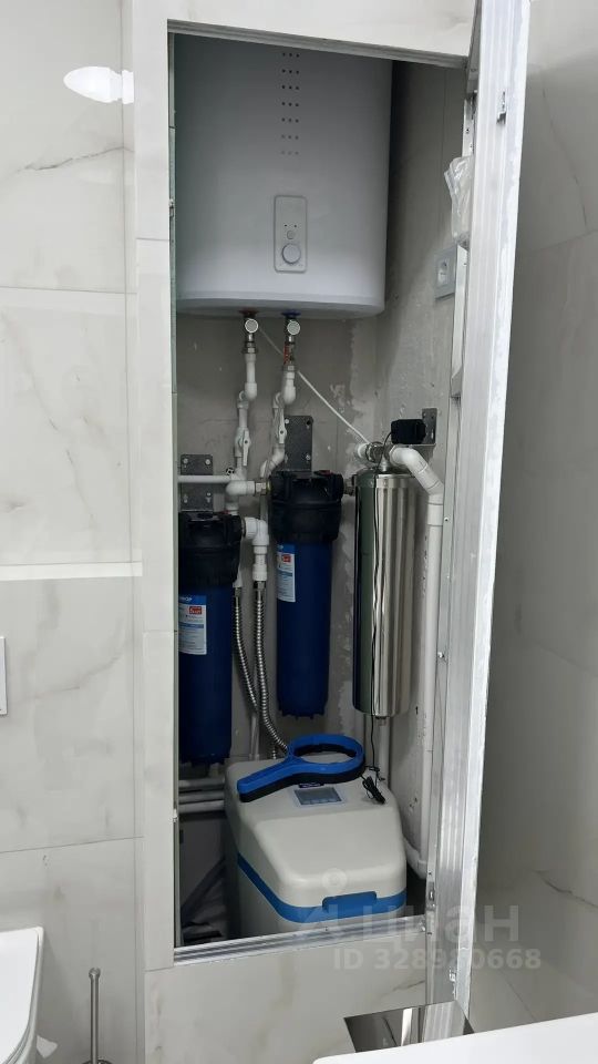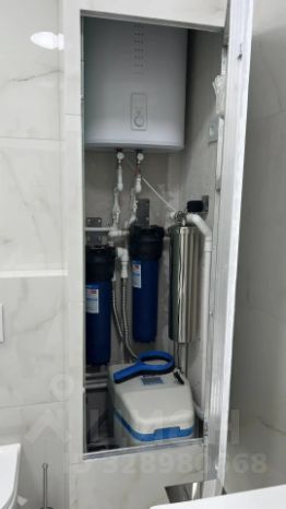 Установлена комплексная система очистки воды Аквафор S550, включающая в себя самоочищающийся фильтр, обезжелезиватель и умягчитель воды. Система фильтрации воды удаляет соли жесткости, железо и марганец.
