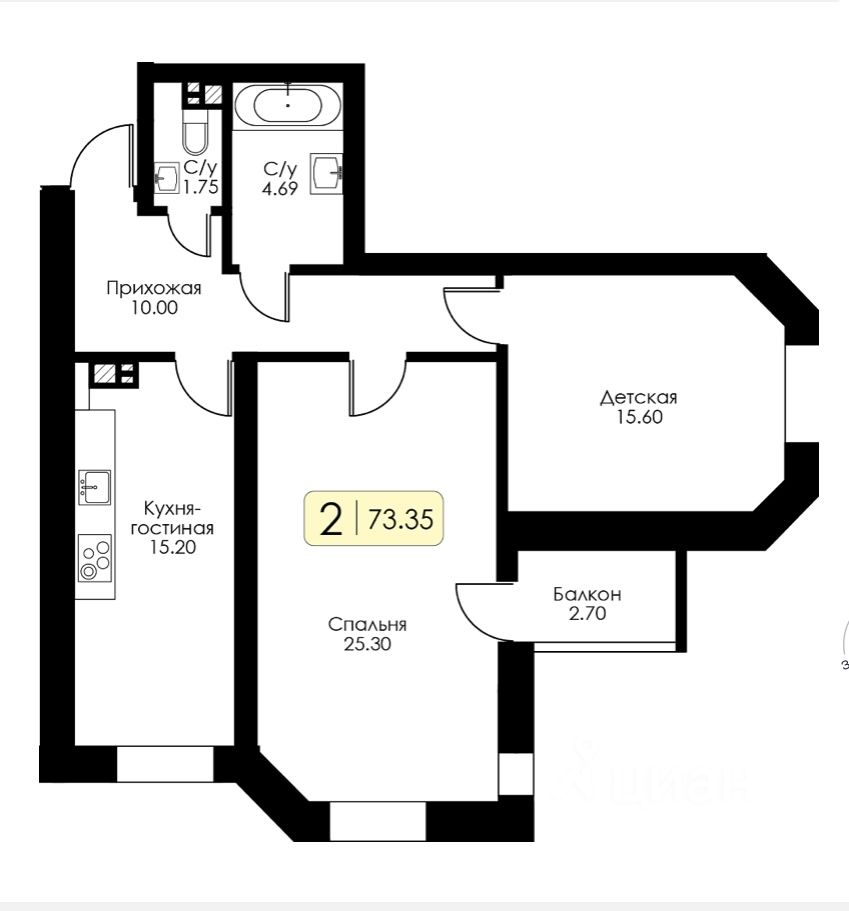 73,4 м²