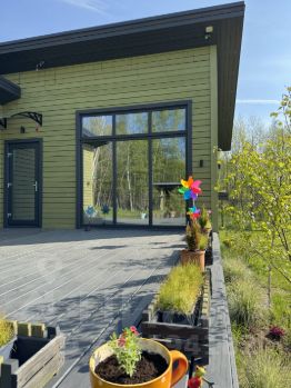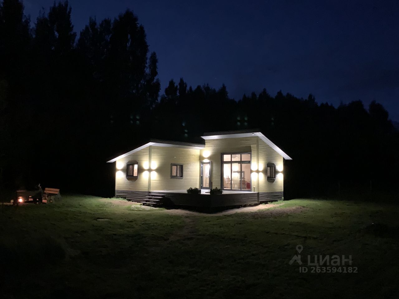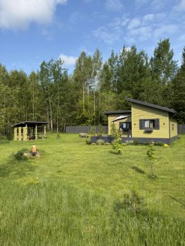 Общая площадь дома 75 м² (45 м² жилая и 30 м² терраса). Дом построен в 2022 году из каркасных панелей заводского изготовления. Утепление стен и пола 200 мм. Крыша металл, утепление 300 мм. Фундамент 31 металлическая винтовая свая диаметром 108 мм.