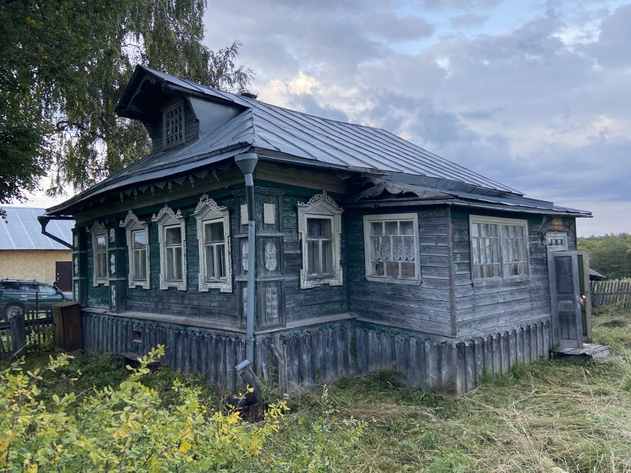 Дом из цельного сруба на фундаменте, с железной крышей. В доме есть электричество и печное отопление. По планировке: центральная комната, передняя, маленькая комната и кухня. Терраса с двух сторон, большой коридор. Пристройка двора немного поехала, но сам сруб стоит идеально.