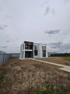 В дом заведены все коммуникации (свет, газ, вода-скважина, канализация-биостанция)! Сделана отмостка вокруг дома. Участок угловой, ровной формы, вокруг обнесен забором с откатными воротами.