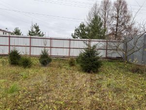 Забор по всему периметру участка. Высажены яблони,ели,туи.