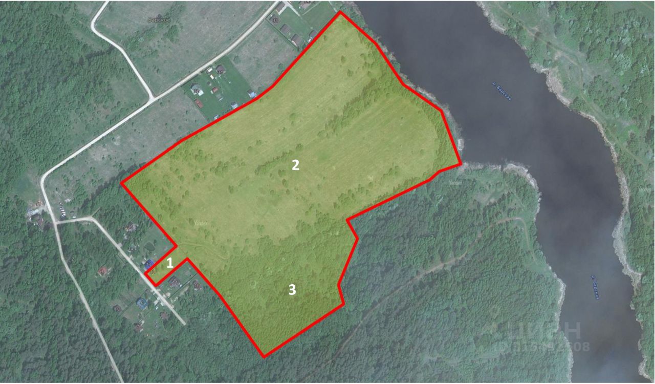 первая береговая линия, двумя сторонами примыкает к поселку Барское и к первому участку, третьей стороной примыкает к реке.
