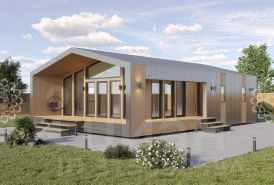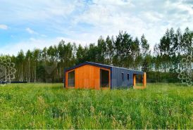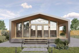 У дома кровля профнастил Grand Line 0.5 Rooftop, фундамент железобетонные забивные сваи 150*150 мм, утепление пола и кровли -плита минераловатная 250 мм, утепление внешних стен - плита минераловатная 150 мм, внешняя отделка дома - профнастил Grand Line 0.5 Rooftop/вагонка Штиль, окна тройные стеклопакеты.