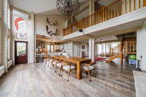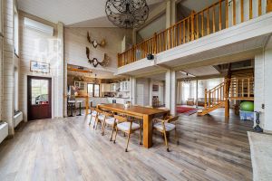 Участок полностью огорожен, правильной формы, организован комфортный заезд. На территории участка также расположен двухэтажный гараж на 2 автомобиля, который также отлично подходит для стоянки водного транспорта, а на втором этаже - помещение свободного назначения.