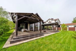 Дом идеально подходит для круглогодичного постоянного проживания. Планировка включает в себя просторную гостиную со вторым светом, 5 комфортных просторных спален, одна из которых находится на первом этаже, а также две ванные комнаты. Из зоны кухни и гостиной есть выходы на большую крытую террасу с дополнительными прозрачными рольставнями для комфортного пребывания на свежем воздухе в любую погоду.