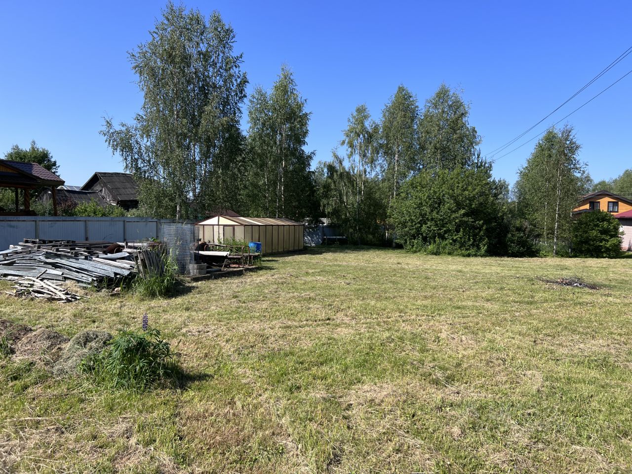 Въезд на участок возможен с улицы и с задней стороны участка. На участке есть бытовка, забетонированная площадка 6 х 9 метров и теплица на бетонном фундаменте.