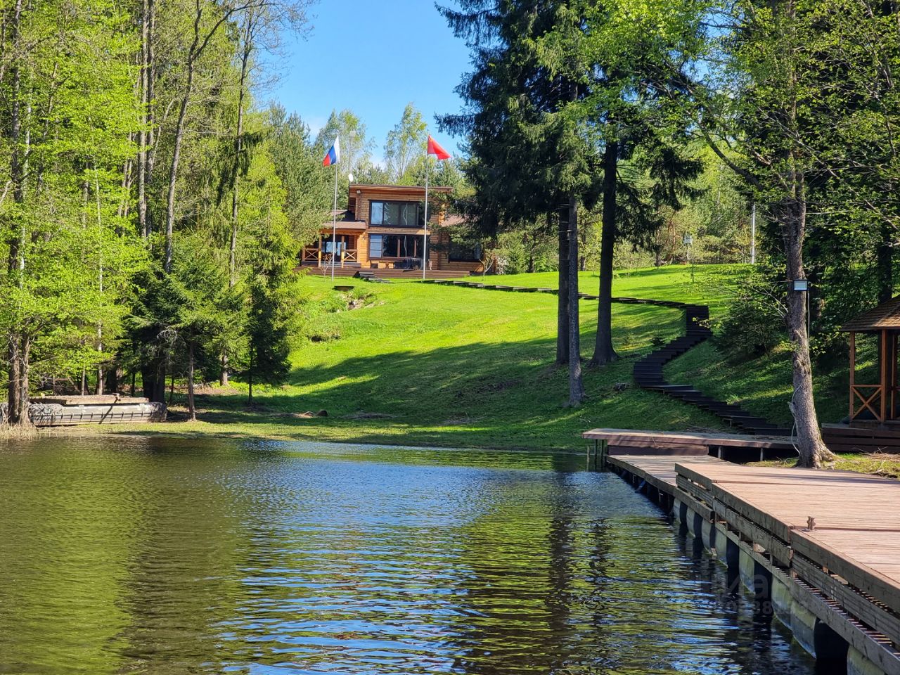 Предусмотрен выход к воде и расположенной на озере бане. Баня оформлена как плавсредство - документы имеются.