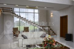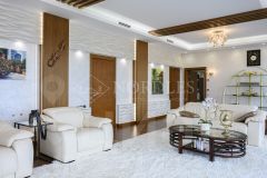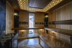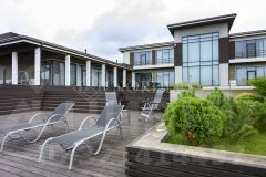 Роскошные интерьеры: SPA-комплекс:финская сауна с печью EOS, купель с фильтрацией, тропический душ, зона релаксации Первый этаж:гостиная с вторым светом и биокамином, кухня с техникой Smeg, кабинет, спортзал, постирочная Второй этаж:две мастер-спальни с террасами, два санузла